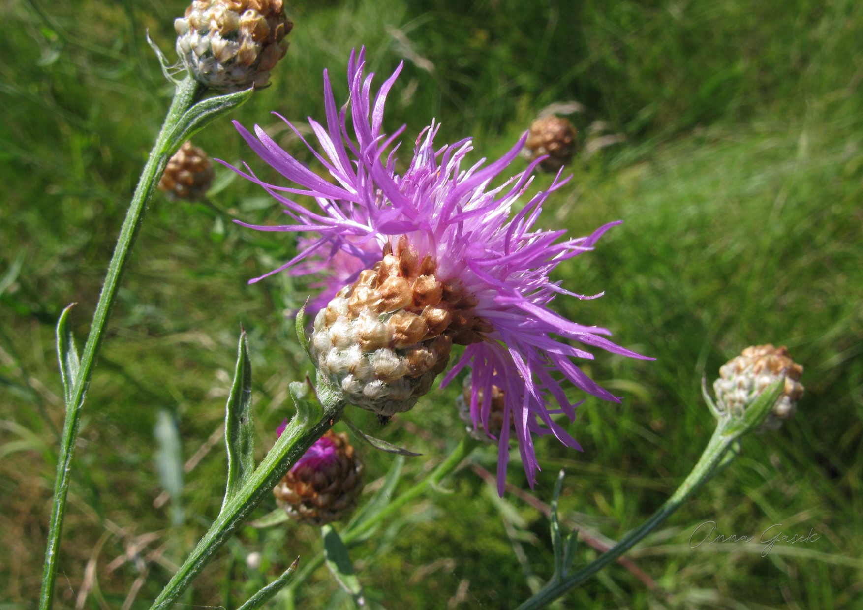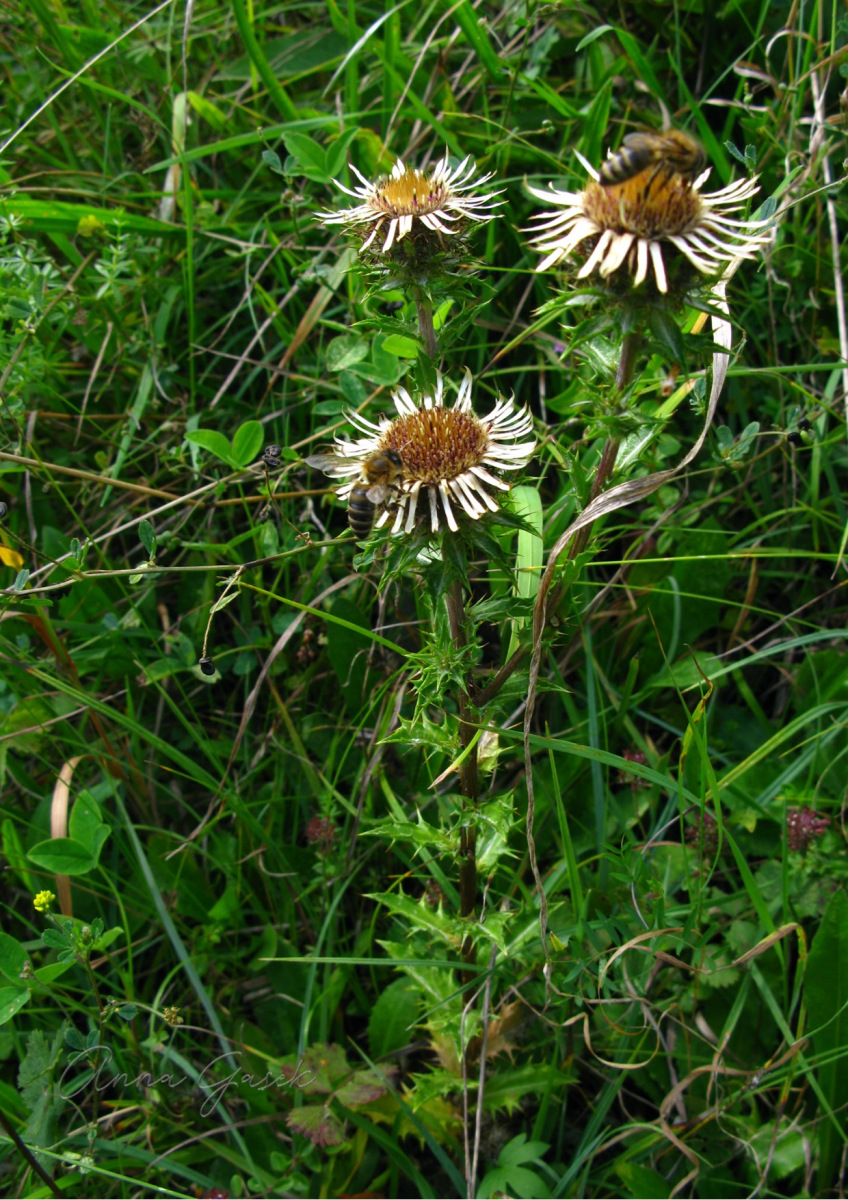 W Beskidach, od Ustronia w Beskidzie Śląskim po Ustrzyki Dolne w Bieszczadach łąki zachwycają łanami mieczyka dachówkowatego (Gladiolus imbricatus), ten widok jest doprawdy niezapomniany, choć krajobraz łąk z rdestem wężownikiem (Polygonum bistorta) mu nie ustępuje. To roślina ze zwartymi, walcowatymi kwiatostanami w postaci kłosa, w odcieniu delikatnego różu, falującymi w podmuchach wiatru. Warto też zainteresować się poziewnikiem pstrym (Galeopsis speciosa), jego nieduże kwiaty grzbieciste zachwycają połączeniem barwy żółtej i purpurowo-fioletowej. Przy drogach, którymi biegną wakacyjne szlaki rozpościerają się rozety liści z dużym centralnie umiejscowionym kwiatostanem-koszyczkiem, to dziewięćsiły bezłodygowe (Carlina acaulis), a także ich bliscy kuzyni dziewięćsiły pospolite (Carlina vulgaris), o wysokiej prostej łodydze dorastającej do 80 cm wysokości. Liście obu gatunków są charakterystycznie kolczaste.