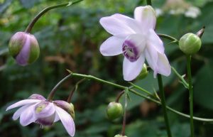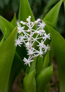 Od maja do czerwca kwitnie także spejranta konwaliowata (Speirantha convallarioides), dziko rosnąca w południowo-wschodnich Chinach. Ona również preferuje dość wilgotne, zaciszne stanowiska o leśnym, torfiasto-próchnicznym podłożu. W Polsce zimuje znośnie, choć na wszelki wypadek dobrze okrywać ją jedliną latem przed słońcem, a zimą przed mrozem. Zawilcowiec oraz spejranta wspaniale uzupełnią nasze kolekcje geofitów przedwiośnia i wczesnej wiosny (przylaszczek, zawilców, ciemierników i kokoryczy), gdyż przedłużą trwanie kobierca kwiatów aż po wczesne lato. Kolejną ozdobą ogrodu leśnego może stać się parnik kantoński (Disporum cantoniense), występujący dziko na obrzeżach lasów Kraju Kwitnącej Wiśni oraz zachodnich Chin. Roślina dekoracyjna tak dzięki kwiatom, jak liściom i owocom. Dolne liście podobne do konwaliowych lub ciemiężycowych: jajowate, wydłużone, zaostrzone, podłużnie unerwione i lekko skórzaste. U niektórych odmian wybarwiają się wiosną na bordowo. W pełni wiosny wypuszcza na końcach pędów lekko rozchylone, zwisłe, dzwonkowate kwiaty. Zależnie od kultywaru – białawe, żółtawe lub czerwone. Latem ich miejsce zajmą małe, czarnogranatowe jagody. Mnożenie odbywa się poprzez podział kłączy albo z nasion. Okazy młode i przesadzane jesienią potrzebują okrycia. Wymagania będą tutaj podobne jak u paznokietki.