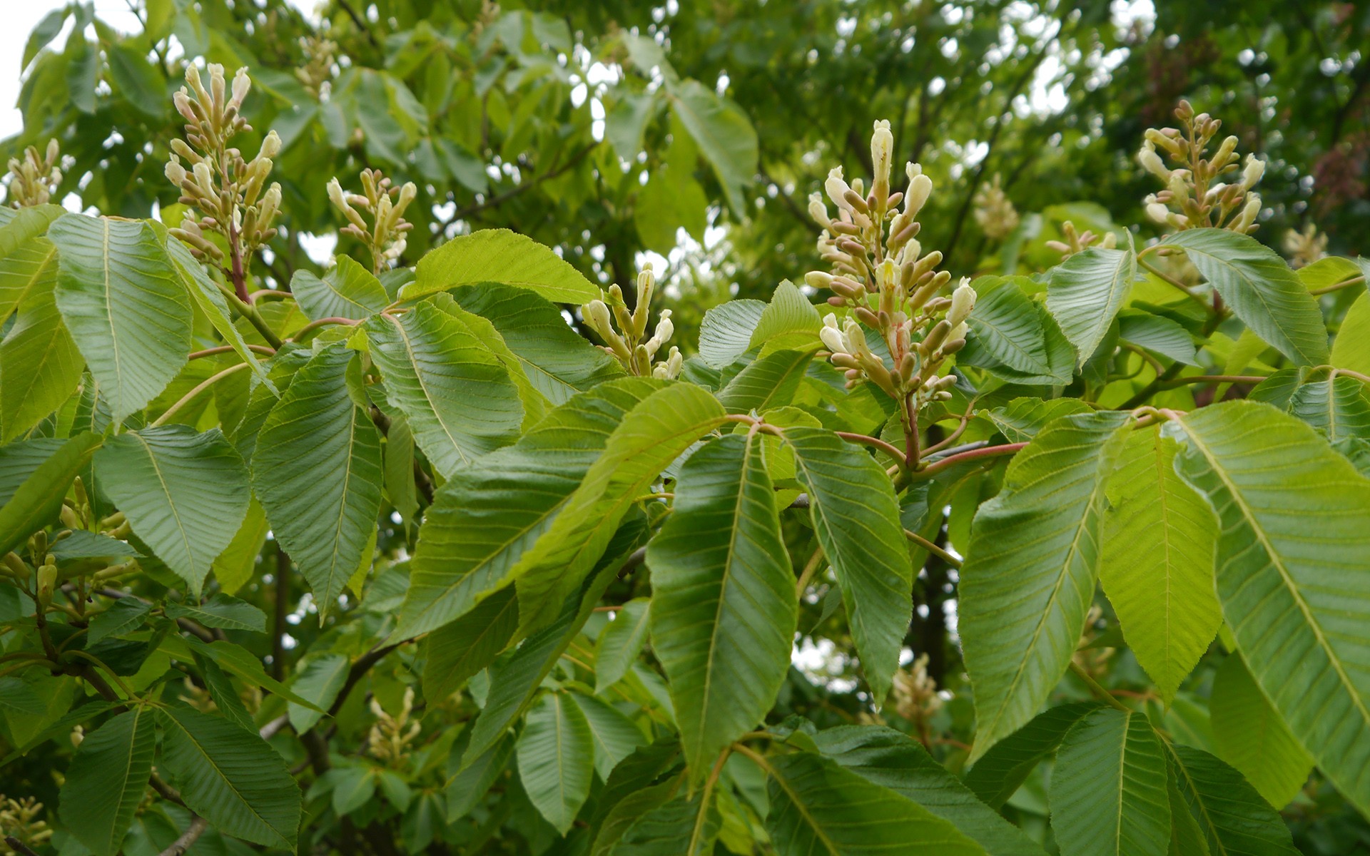 Wszyscy znamy nasze swojskie, aczkolwiek pochodzące z Bałkanów kasztanowce białe Aesculus hippocastanum: o kopulastych koronach; wielkich, lepkich pąkach oraz dużych liściach ciemnozielonych wiosną, a soczyście złotych na jesieni. Od kilku lat mocno cierpią wskutek inwazji szrotówków, mimo to co raz częściej uciekają z parków i promenad w głąb lasów. To niezwykle lubiane u nas drzewo odgrywa istotną rolę przy wyznaczaniu fenologicznych pór roku. Pękanie pąków i rozwój liści to niechybna oznaka pierwiośnia; pełnia kwitnienia wyznacza pełnię wiosny; zaś opadanie liści nie przyśpieszone suszami i presją owadów zwiastuje fenologiczną jesień.