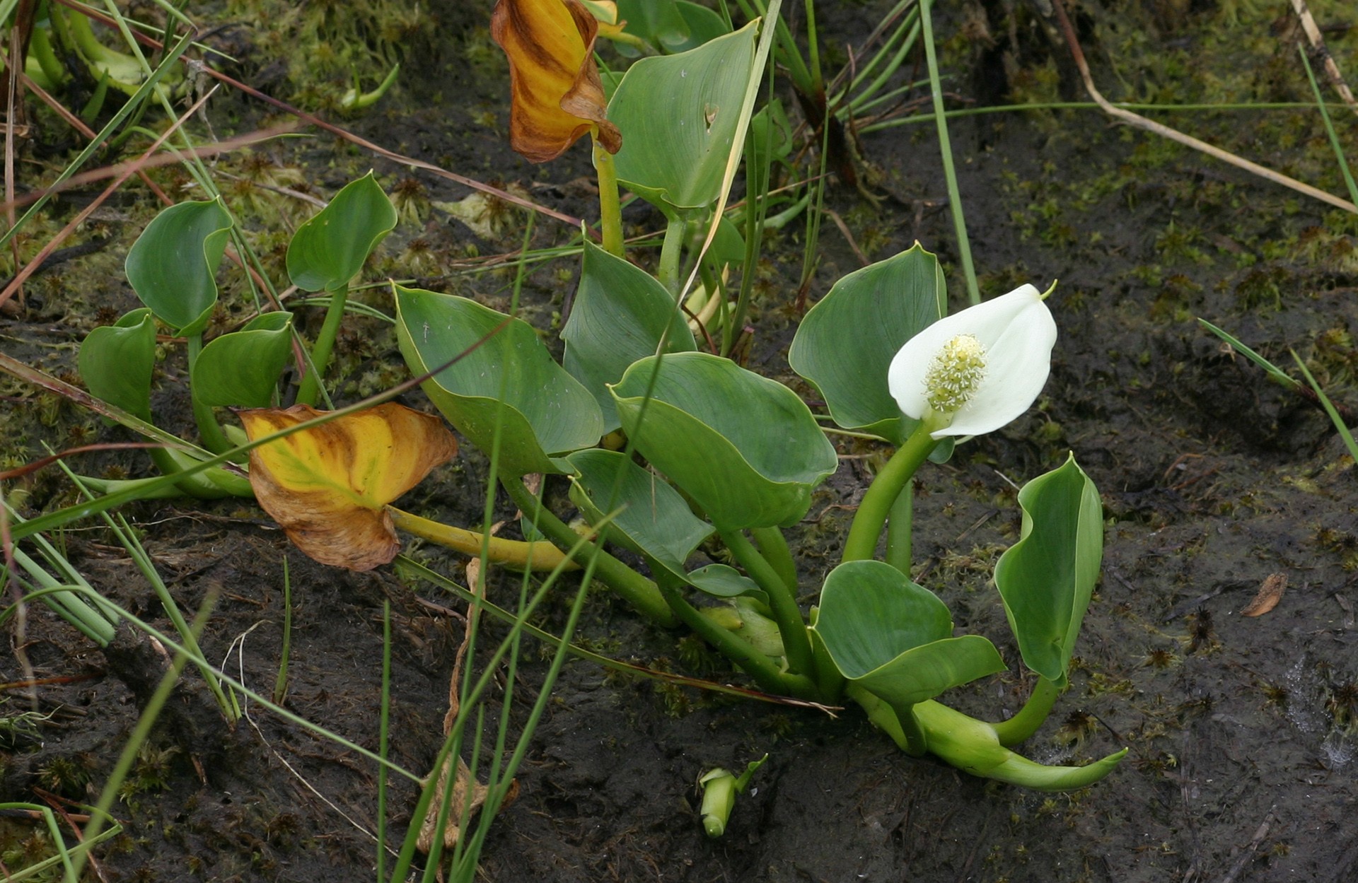 Czermień błotna (Calla palustris) to roślina o nietuzinkowym wizualnie owocostanie, który poprzedza równie niebanalny kwiatostan. Rośliny mają mięsiste, sercowate liście, umieszczone na długich ogonkach, wyrastające z długiego płożącego się kłącza. W ciągu sezonu wegetacyjnego kłącze szybko rośnie i rośliny potrafią zająć nawet spory teren. Od maja do lipca spomiędzy żywo zielonych liści wychylają się niepozorne kwiatostany w formie kolby długości 2-3 cm. Kwiatostan otoczony jest bardziej ozdobną pochwą zwaną spatha czyli wyróżniającym się liściem podkwiatostanowym, w kolorze białym. Ten typ kwiatostanu możemy obserwować również u innych roślin z rodzimy obrazkowatych (Araceae), np. anturium, czy dziwidło. Po przekwitnięciu zaczynają tworzyć się owoce, są to intensywnie czerwone jagody zebrane w kolbowaty owocostan.