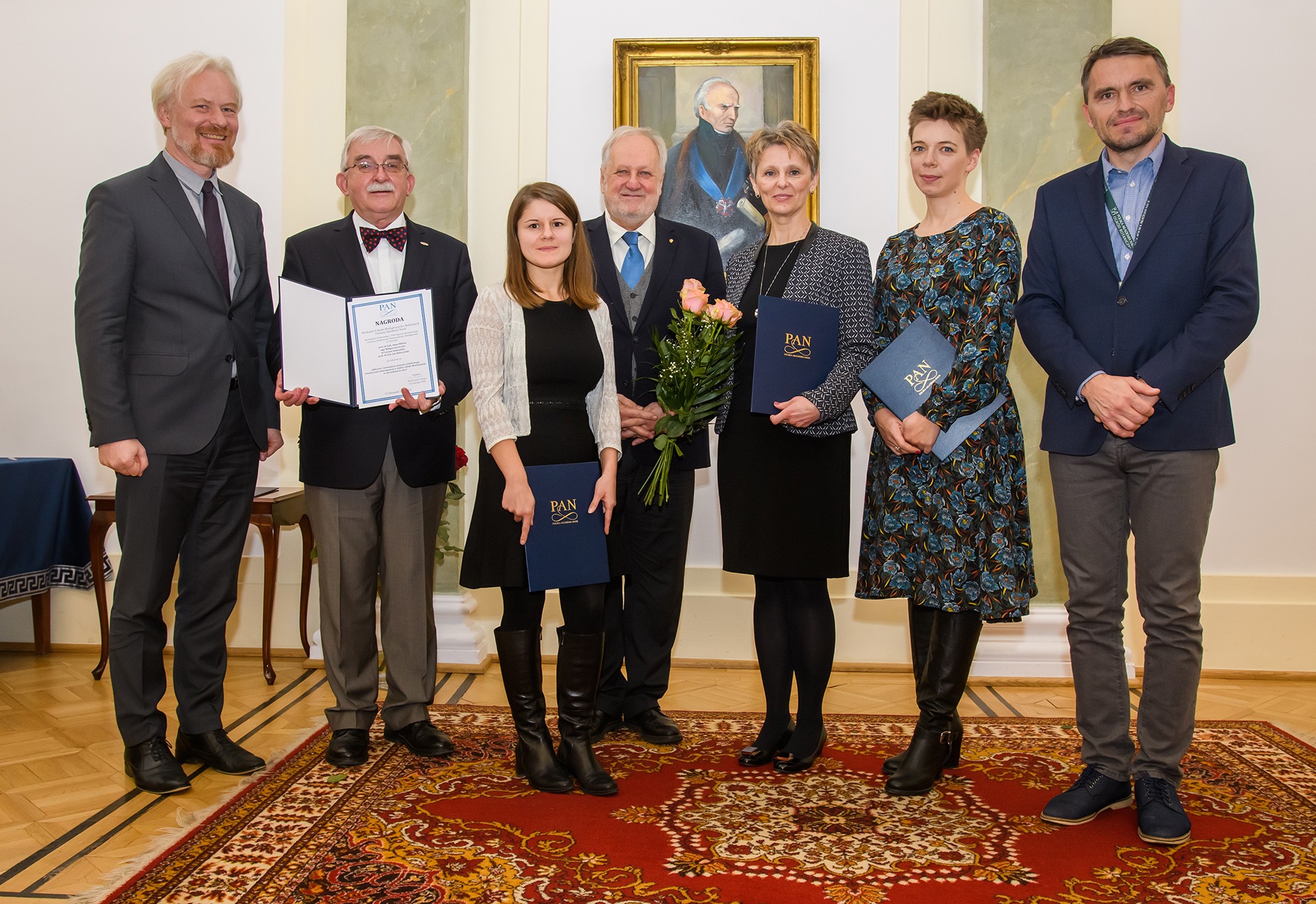 Od lewej: dr Paweł Kojs – dyrektor PAN Ogrodu Botanicznego, prof. Jan Rybczyński, mgr Małgorzata Grzyb, prof. Jerzy Duszyński – prezes PAN, prof. Anna Mikuła, dr Lucyna Domżalska, prof. Arkadiusz Nowak – z-ca dyrektora PAN Ogrodu Botanicznego ds. naukowych.