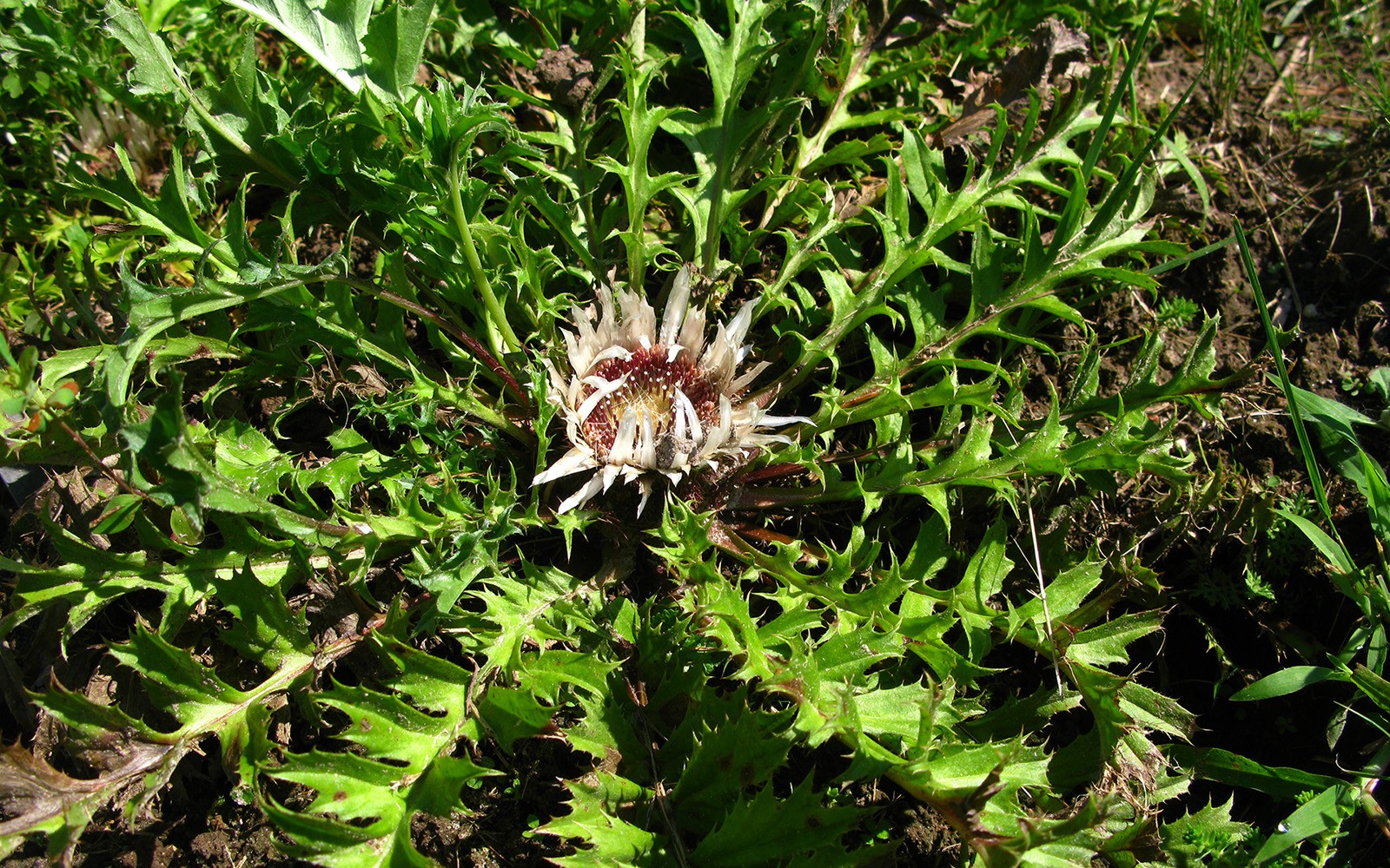 Powszechnie w Polsce występuje dziewięćsił pospolity (Carlina vulgaris), ale podejrzewam, że może być mniej znany od swoich sławniejszych krewniaków. Jest wysoką do 60 cm rośliną dwuletnią o rozgałęzionej w górnej części łodydze. Liście ma wydłużone, kolczaste, umieszczone na długości całej łodygi. Na zakończeniach rozgałęzionej łodygi znajdują się kwiatostany-koszyczki o średnicy 3 cm, które otoczone są słomiastymi, sztywnymi, żółtawymi listkami okrywy koszyczka. Kwitnie od lipca do września. Rośnie na suchych murawach, na przydrożach i w widnych lasach. W Kolekcji flory Polski zobaczyć go można na „rabacie słonecznej”.