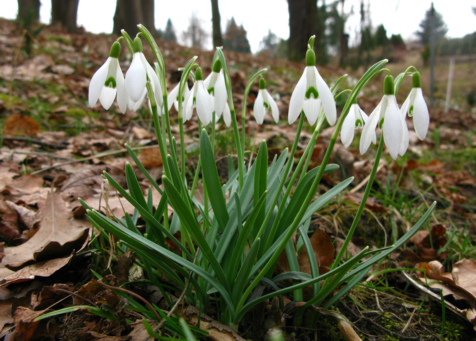 Na przedwiośniu zaczynają kwitnąć też śnieżyczki przebiśniegi (Galanthus nivalis). Ich zwieszone białe kwiaty pojawiają się w marcu. Nieraz zdarzało się w Ogrodzie, że kwitnące przebiśniegi zasypywał nocny śnieg, ale południowe słońce roztapiało jego wierzchnią warstwę i kwiaty wyłaniały się spod białego puchu nieuszkodzone. Rośliny kwitnące tak wcześnie musiały wytworzyć wiele systemów zabezpieczających przed uszkodzeniem tak ważnych przecież dla nich organów rozmnażania, jakimi są kwiaty. Między innymi jest to możliwość zamykania kwiatów w niesprzyjających warunkach nawet na kilka dni i utrzymywanie w pąku wyższej temperatury niż na zewnątrz.