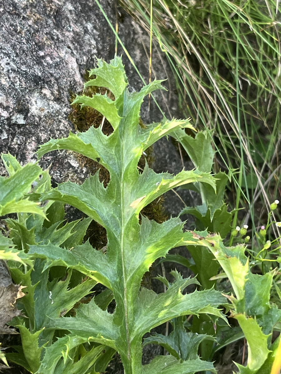 Bardzo charakterystyczne są liście dziewięćsiłu ułożone w rozetę, pierzastosiecznie powcinane, brzegiem mocno kolczaste z rynienkowatym ogonkiem.