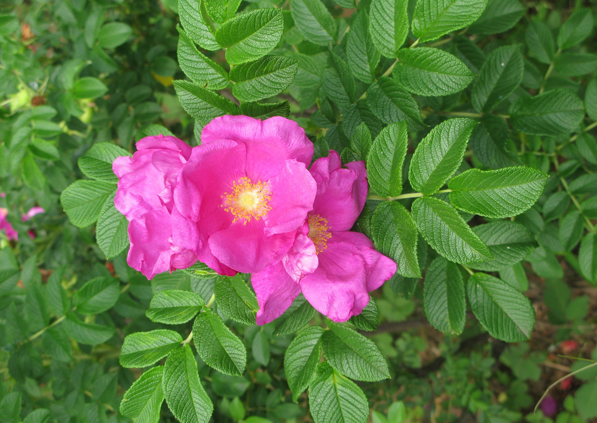 A jednak! Do Europy i Stanów Zjednoczonych sprowadzono ją celowo jako roślinę ozdobną, materiał do tworzenia nowych odmian oraz niewyczerpane źródło mięsistych płatków kwiatowych oraz wybornych pseudoowoców na dżemy i nalewki. Do dziś pozostaje ulubioną różą polskich drogowców do utrwalania i ozdabiania skarp przy autostradach i torach kolejowych. Jak przystało na gatunek nadmorski, przywiązany w swej ojczyźnie do zarośli wykształcających się między wydmami i plażami, a lasem na piaszczyskach doskonale znosi niestabilne, jałowe, zasolone i silnie przepuszczalne podłoże, gęste od kurzu wielkomiejskie powietrze tudzież zasypywanie piachem. U nas w środkowej Europie też pryska z upraw głównie nad morze.