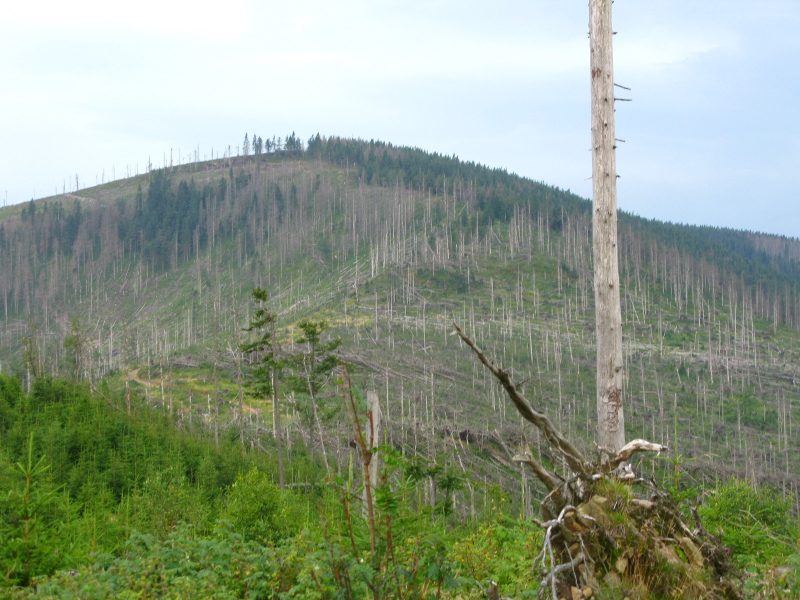 Tysiące lat przystosowania świerka do określonych mikroklimatów człowiek zniweczył w ciągu kilkuset lat swojej gospodarki. Masowa wycinka rodzimych ras świerków i zastępowanie ich roślinami sprowadzanymi z Alp były jedną z przyczyn masowego zamierania lasów świerkowych w Beskidach i Tatrach. W Karkonoszach i Górach Izerskich doszło również do tego zanieczyszczenie powietrza i kwaśne deszcze, które zniszczyły górskie świerczyny.
