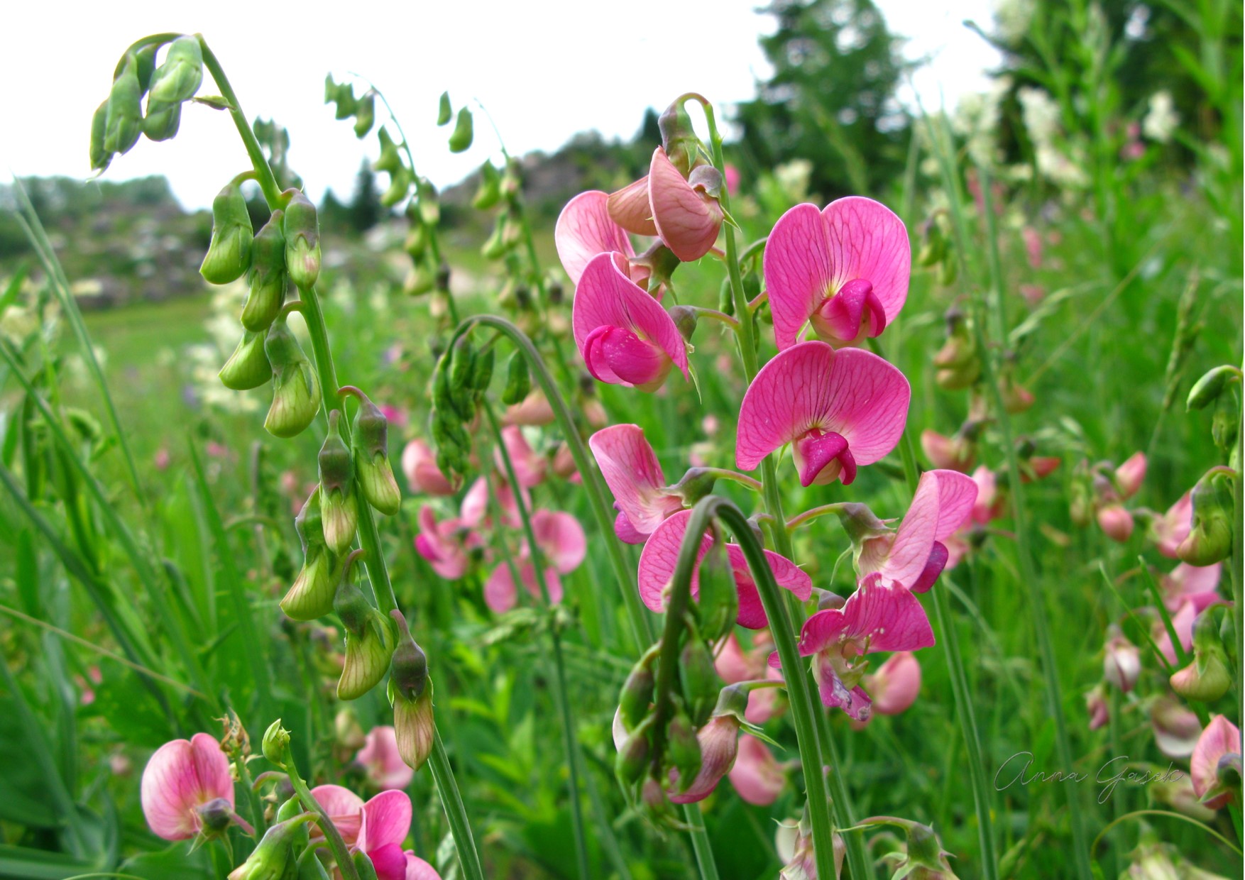 Lipiec, zwykle najcieplejszy miesiąc w roku, znaczony jest burzami i ulewnymi deszczami. W naturze wiele roślin już zawiązuje nasiona, ale jeszcze duża grupa rozpoczyna lub kontynuuje kwitnienie, między innymi kilka gatunków groszków.