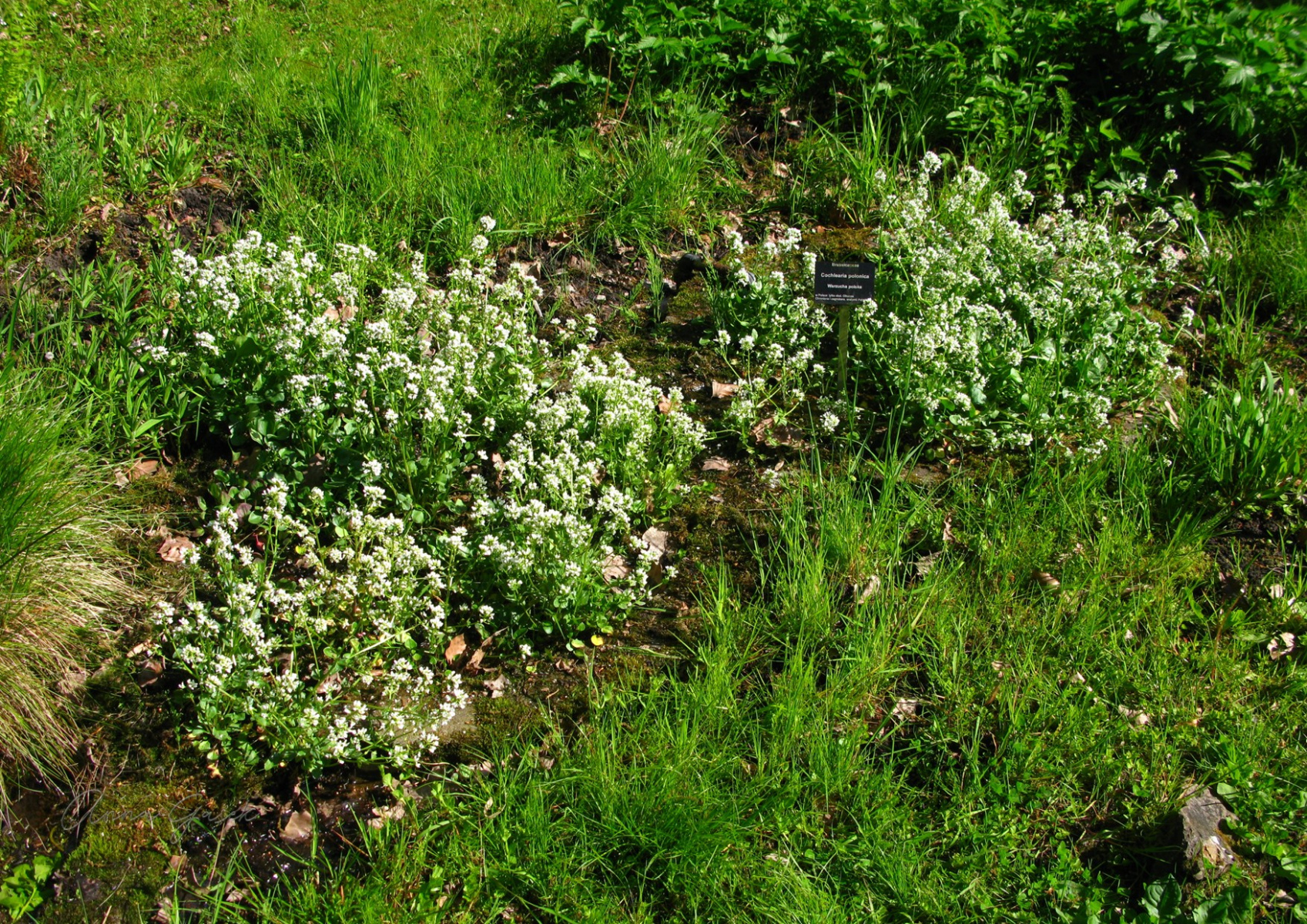 Warzucha tatrzańska (Cochlearia tatrae) jest endemitem tatrzańskim, rosnącym w polskiej, a częściej w słowackiej części Tatr. Występuje głównie w Tatrach Wysokich, a poza nimi tylko sporadycznie. Jest rośliną wysokogórską, spotykaną na wysokościach od 1595 m n. p. m. do 2390 m n. p. m. Rośnie tam na wilgotnych piargach i żwirkach oraz na półkach skalnych na glebach o odczynie kwaśnym. W Ogrodzie warzuchę tatrzańską uprawiamy od 2010 roku. Stanowisko dla niej utworzono w spływającej z górki powsińskiej kaskadzie. Te dwuletnie rośliny bardzo dobrze zaaklimatyzowały się na wysokości około 100 m n. p. m. co roku kwitną i wydają nasiona. Ogólnie drobna i niepozorna roślina, na początku kwietnia zamienia się w biało kwitnące kule, wyłaniające się z nurtu strumyka.