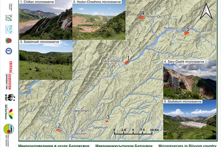 As part of the project, four brochures promoting the conservation of endemics and useful plants of the Balkhuwon region were published. In addition, a guide to eco-trails (including tulip, desert, thistle, garlic and lentil) and descriptions of micro-reserves - the smallest forms of nature conservation, five of which have been designated in the Sary-Khosor Valley (Holdor-Chashma, Chiltan, Mullokoni, Satalmush and Sary-Dasht) were also published. Seeds of about 80 species of endemic, rare and receding plants were collected and deposited in the Gene Bank of the PAS Garden in Powsin.