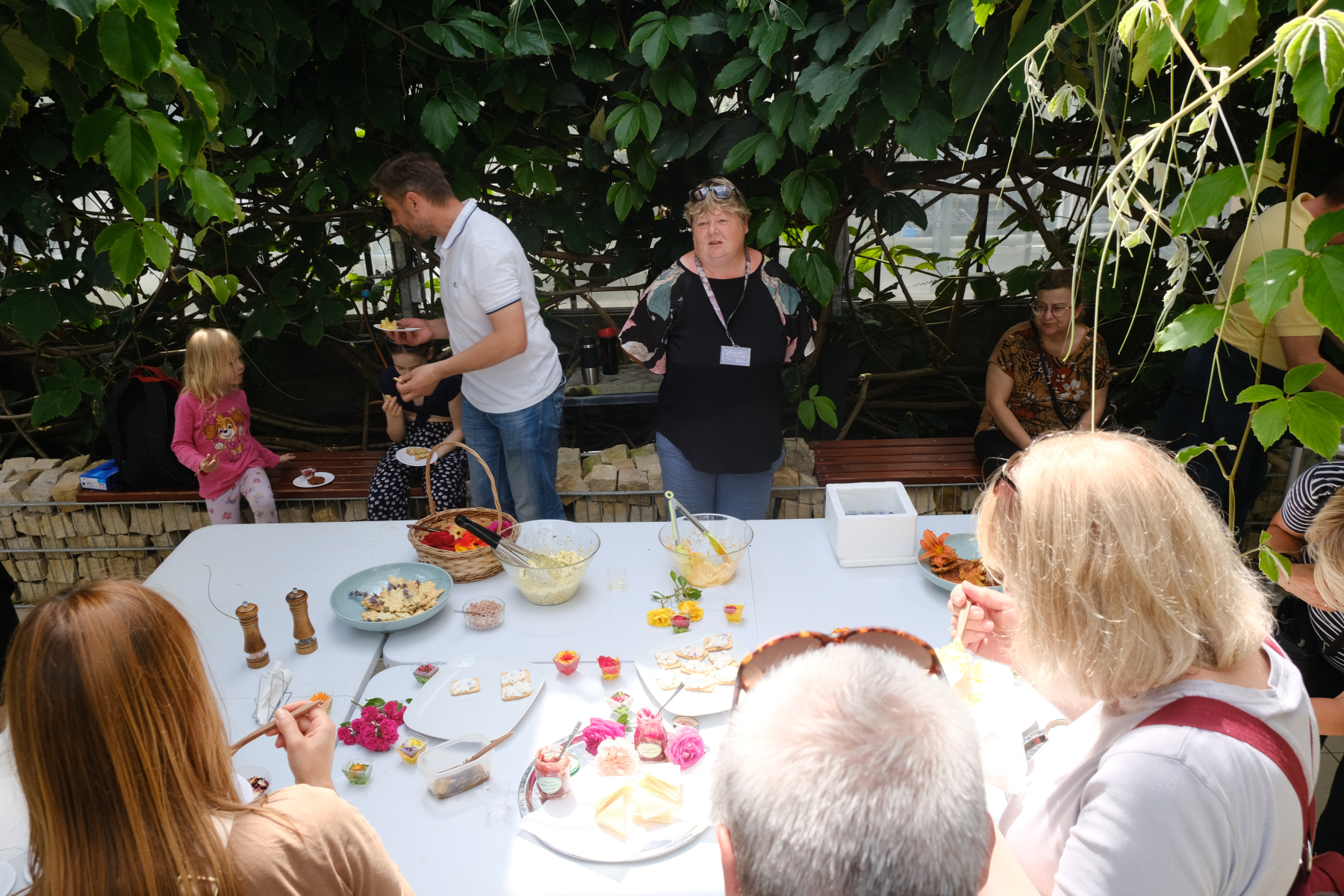 We started with a walk through the Garden. There were a lot of interesting facts about the taste qualities of flowers, questions about "gluttonous morsels" and a powerful portion of knowledge from Ewa Napiórkowska - caretaker of the vegetable plant collection. During the walk we checked whether flowers have any taste at all, learned about plant species with edible flowers and how to harvest, dry, store and serve them.