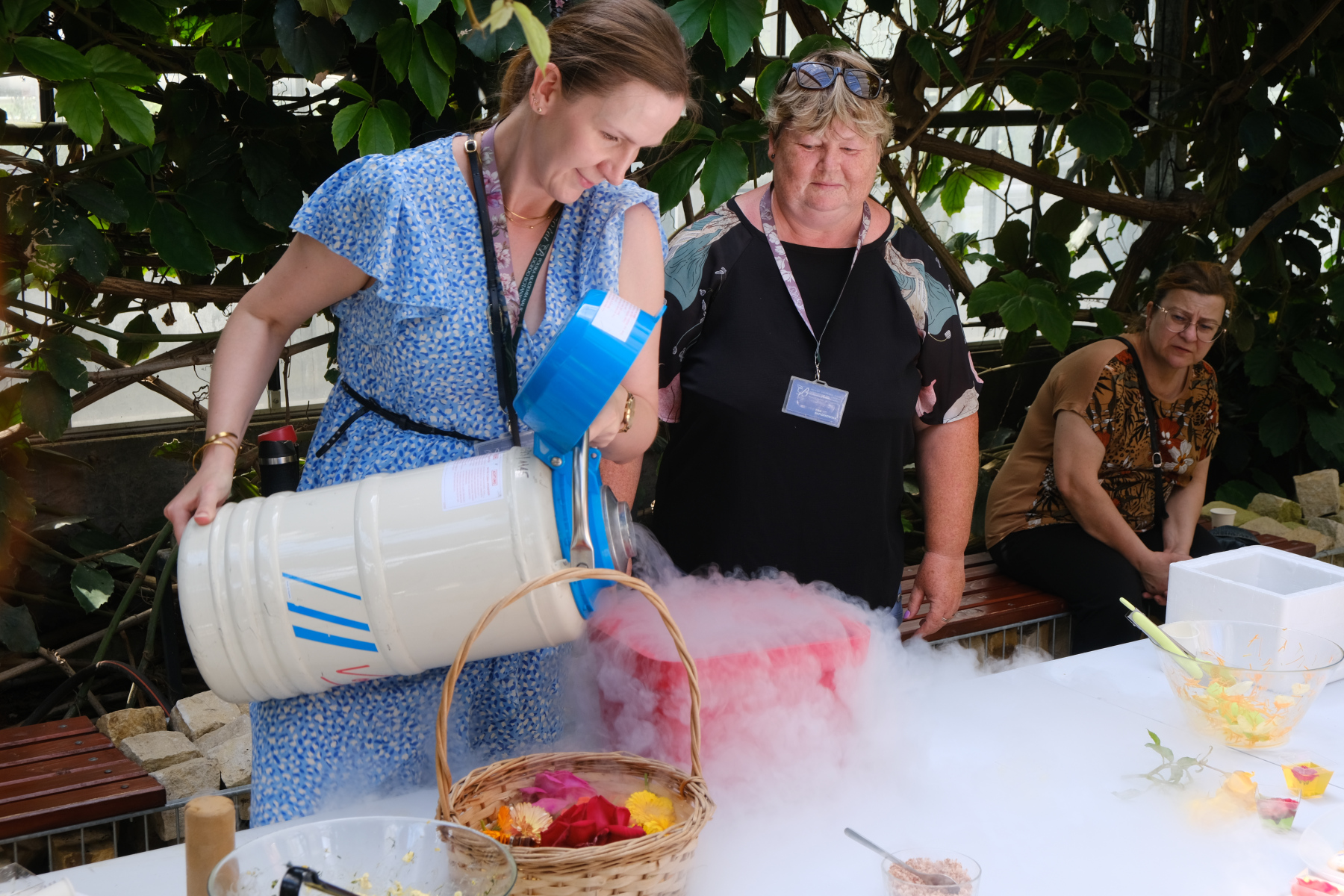 Finally, there was a tasting and a bit of kitchen... magic! In our Orangerie, we activated our sense of taste, and the dishes conjured up were many - pancakes, pickles, jams, lemonades, desserts, condiments, etc. And all of this just from flowers! It turns out that floral flavors not only surprise, but also delight.