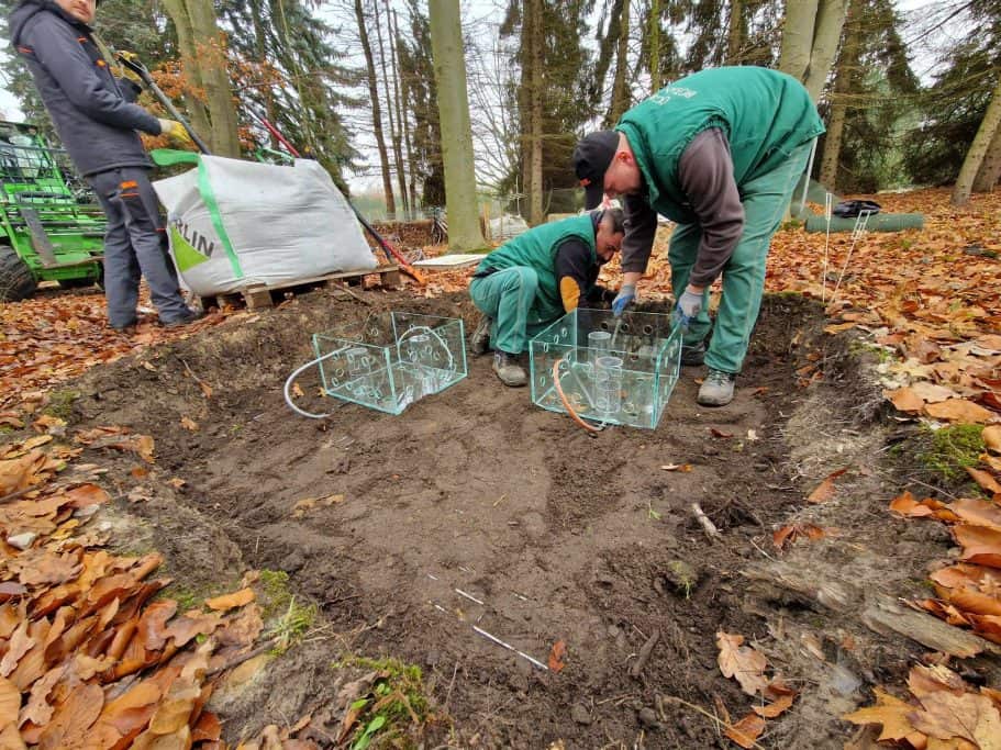 A team of conservation botanists led by Prof. Arkadiusz Nowak has begun a first-of-its-kind experiment in the world to relocate coral nurseries. These are inconspicuous, herbless plants belonging to the orchid family that occur naturally in the lowlands in beech forests orchid. These plants are among those threatened with extinction, especially outside mountainous areas. The plant is under strict species protection in Poland and included in the Red List of Plants and Fungi of Poland. The threatened populations of the nursery were brought to our Garden as part of the so-called conservation translocation. They were placed in special glass and perforated boxes in specially prepared pits under the canopy of beech trees. In the pits and boxes, the soil profile characteristic of the forest rendzina found in the donor site was reconstructed. Risomes The nurseries have been placed on the tops of the cylinders in such a way that it is possible to observe them through sight cameras or after lifting the entire box. The aim is to learn about and monitor the behavioral status and developmental stage of the individuals. The experiment is planned for five years. It involves botanists - scientists - as well as horticulturalists and technical staff.