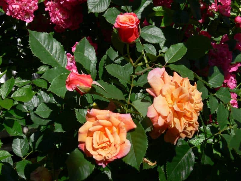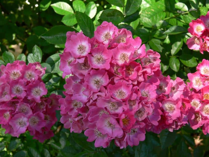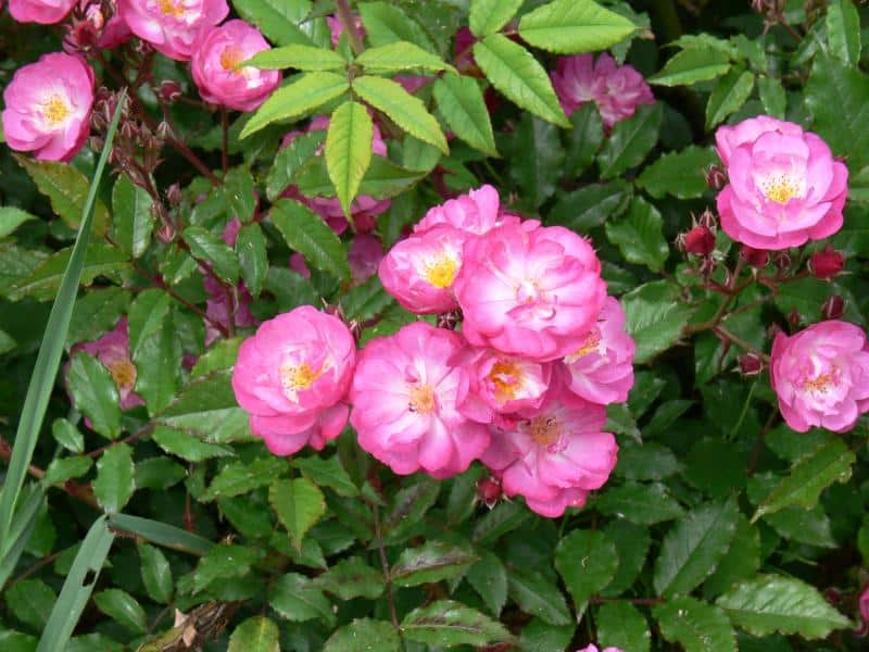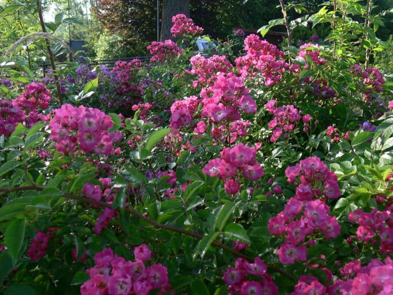 Discount roses present contemporary and older varieties that belong to four subgroups of multifloral roses (Polyantha), multifloral bedding hybrids (Polyantha Hybrida), bouquet roses (Floribunda) and large-flowered bouquet roses (Grandiflora). They are abundant and long-blooming shrubs, with greater resistance to disease and frost than large-flowered varieties. They delight with their rich colors and variety of flower forms - from snow-white Schneewitchen, through golden yellow Golden Holstein, Goldquelle, flesh-colored Schackenborg, peach Apricot Nectar, orange Amber Queen, pale pink Diadem and 'Bonica'82, coral Fredensborg, pink Bella Rosa, amaranth 'Joseph Guy', purple Deutsche Welle, mottled orange-yellow-red Samba and Rumba, to countless shades of red - Pussta, Montana, Nina Weibull, Lilli Marleen, Kronborg to red-black Lavaglut. Among them are Polish varieties, e.g. 'Camping', 'Kutno', 'Alicja'. Grateful, tiny flowers in huge inflorescences of several dozen flowers have Polyantha roses, e.g. pink 'The Fairy' and 'Lovely Fairy' and bright red, ball-shaped - 'Muttertag'. There are many new varieties growing in the collection with pastel or other amazing flower colors, easier to care for and more disease resistant, e.g. Anisade, Briosa, Leonardo da Vinci, Balmoral, Amazing Palace, Rhapsody in Blue, Cinco de Mayo, Pastella.