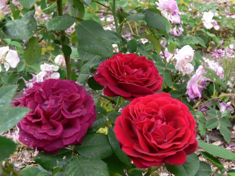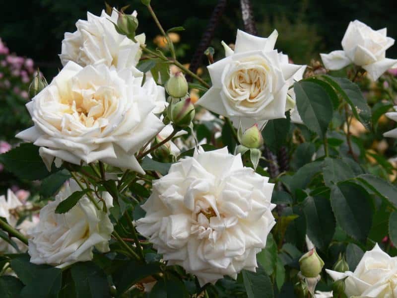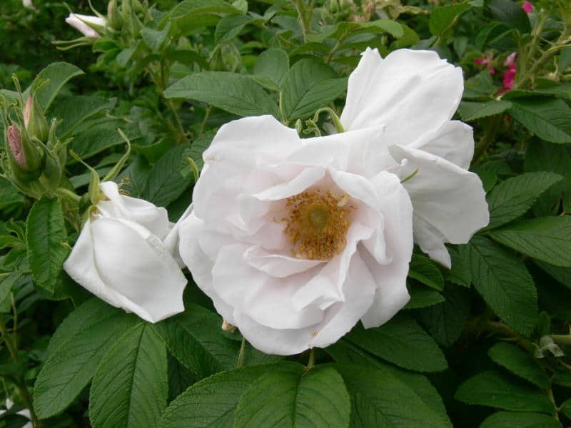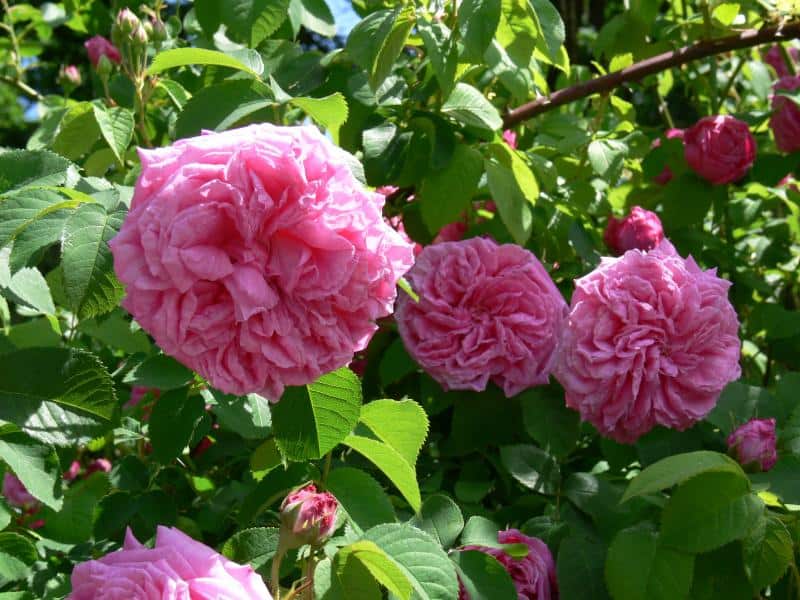 Historic roses are cultivated species and their varieties developed until the end of World War II. Today they are rarely found. They are an important part of the preservation of human cultural heritage and the biodiversity of cultivated varieties. The roses of our ancestors are notable primarily for their strong fragrance and special flower shape, rarely seen in modern varieties. Among them are damask roses, Portland roses, Bourbon roses, remontants and many others. These include: 'Shailer's White Moss' (1788) - a variety of moss roses (R. ×centifolia f. muscosa), with original mossy calyxes of snow-white flowers; R. foetida 'Persian Yellow' - one of the few oldest cultivated varieties with yellow, full flowers; R. ×alba 'Maiden's Blush' - with strong, delicate, sweet-scented pale pink flowers; R. gallica 'Cardinal de Richelieu' (1840) - with very dark, violet, full flowers, darkest at the time of its emergence. In addition, of interest are varieties of rose groups bred in the 19th and early 20th centuries, very rarely seen in cultivation today. These include, among others. Bourbon roses - 'Variegata di Bologna' (1909) with striped light pink and dark purple and 'Zéphirine Drouhin' (1868) climbing, with lilac-pink flowers; portland - 'Jacques Cartier' (1868) with numerous petal-filled flat, light pink flowers; remontants with very large, fragrant, shapely buds - 'Frau Karl Drushki' white and 'Victor Verdier' dark pink. Several varieties overwinter in the greenhouse, such as the Chinese rose - R. chinensis 'Viridiflora' (,,green rose'), 'Mutabilis' (with multicolored single flowers) and 'Old Blush' (forerunner of numerous repeat-blooming varieties, a model variety in scientific research).