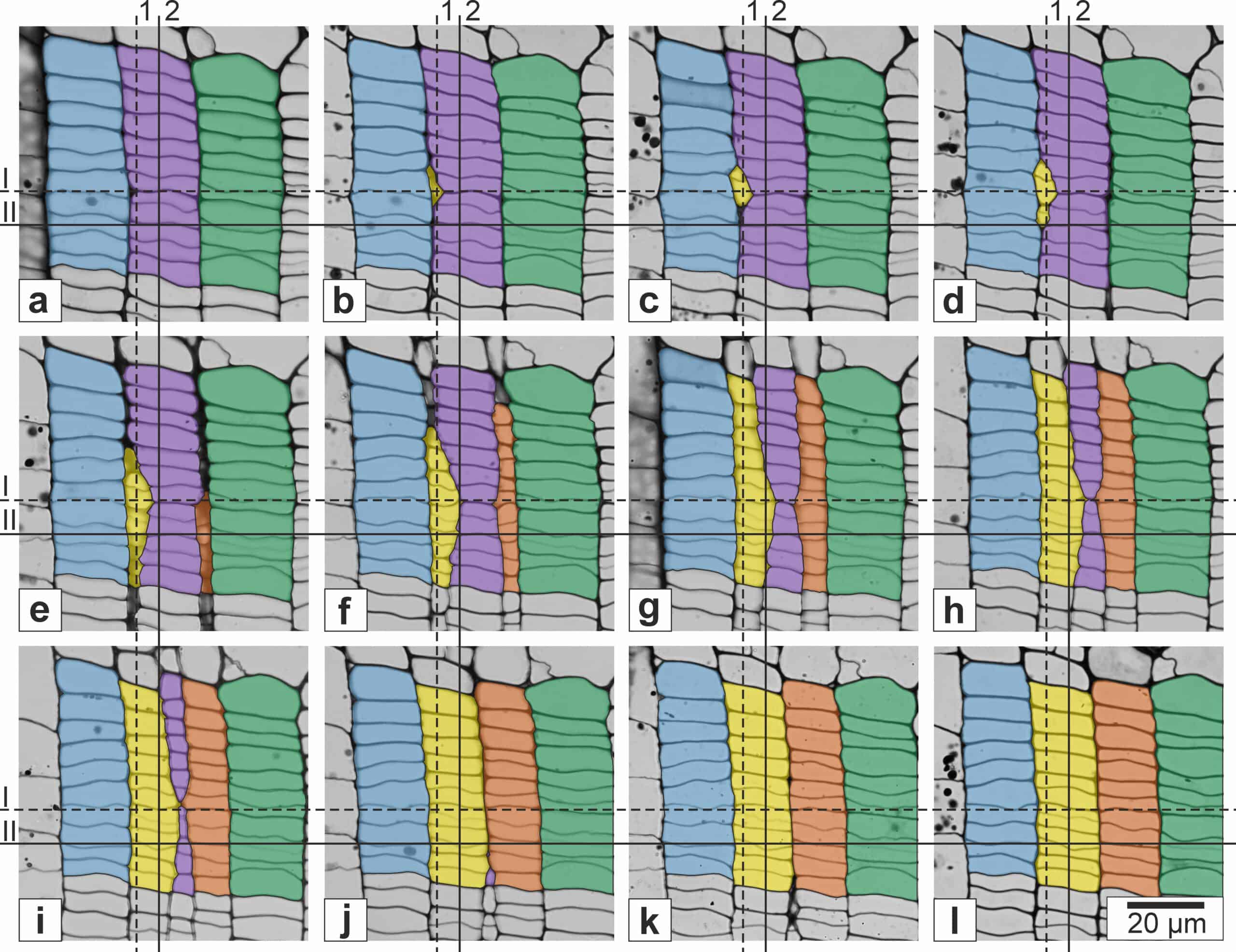 In the magazine Scientific Reports (IF = 4.379) published an article by the staff of the Laboratory of Plant Anatomy on the qualitative and quantitative analysis of the growth of intrusive cambium initials in the Robinia pseudoacacia L. The analysis of cross sections, performed tangential and radial reconstructions of secondary meristematic tissue, as well as measurements of the width of the tissue within which cell remodeling occurs, do not confirm the hypothesis often put forward in the literature that intrusive growth affects the growth of the circumference of the cambium cylinder. The results of the study are in agreement with the statement that symplastic growth (i.e., synchronous, coordinated tissue growth that does not lead to a change in contacts between individual cells) is responsible for the growth of the circumference of the cambium cylinder. Tissue analysis captured the moment of initial status transfer between neighboring cells belonging to the same radial row of cells. An explanation has been proposed that the change in initial cell status may be due to the current arrangement of mechanical stresses in meristematic tissue.