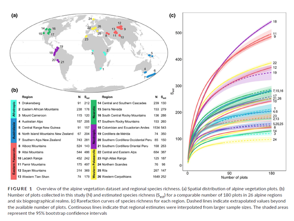 Based on data from 8928 phytosociological images taken by the authors of the paper in 26 ecoregions, in six biogeographic regions, using extrapolation of dilution curves, the most important zones of alpine vegetation were compared in terms of their richness.