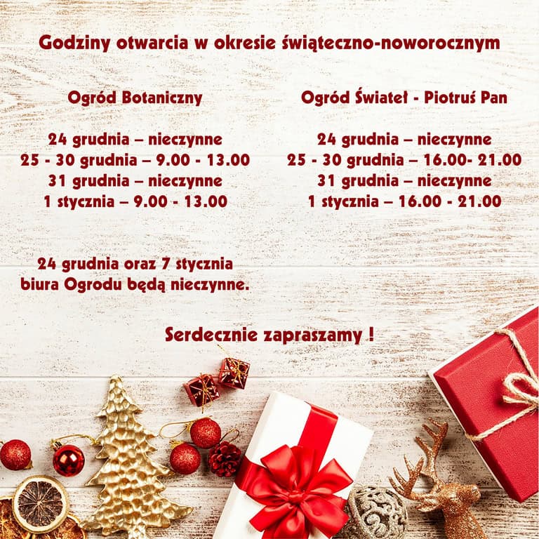 Informacje Godziny otwarcia Ogrodu w okresie świąteczno-noworocznym