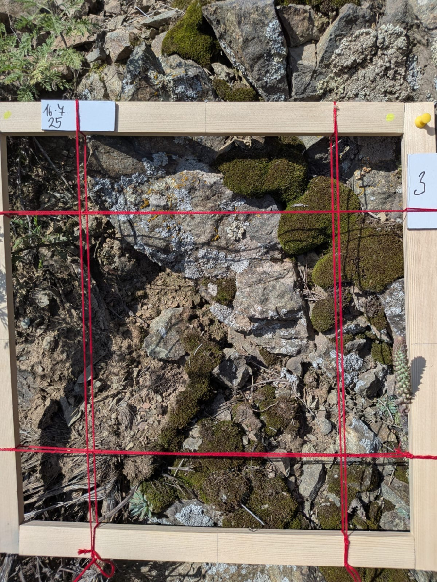 Podczas wyprawy zebraliśmy 287 próbek roślinności kryptogamicznej budowanej przez mszaki i porosty, w postaci 287 zdjęć fitosocjologicznych dokumentujących zbiorowiska roślinne na wychodniach skalnych. Najczęściej spotykane rodzaje mszaków to Grimmia, Tortula, Hedwigia Syntrichia. Pełna lista gatunków i ich procentowy udział zostaną określone po przeprowadzeniu bardziej szczegółowych analiz laboratoryjnych z identyfikacją gatunków i próbek skał.