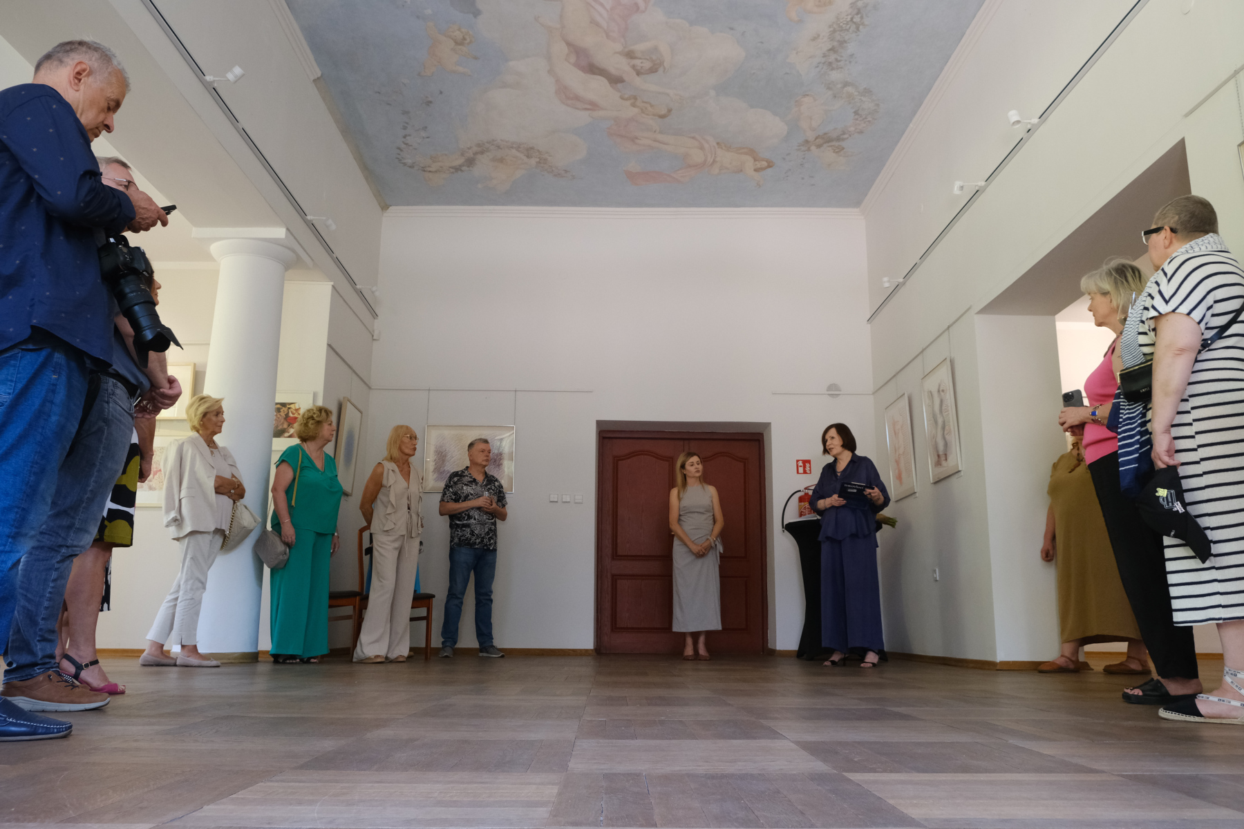 Zestawienie tych prac z klimatem samej galerii może stać się ciekawym zdarzeniem artystycznym. Na atmosferę miejsca silnie oddziałuje wczesne dzieło artysty – plafon o tematyce mitologicznej, namalowany w stylistyce sielankowo-rokokowej.